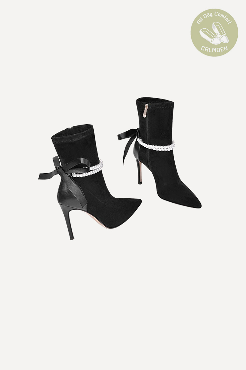 The perfect ankle height—neither overshadowing nor overbearing—narrows the ankle. Combined with a classic pointed toe, they visually slim the foot, elongating the ankle and creating a relaxed, effortless look.