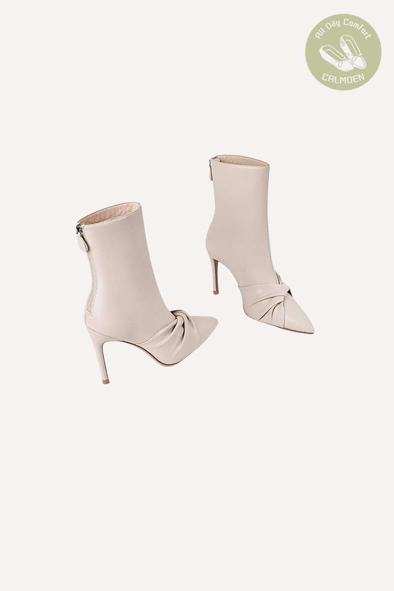 The perfect ankle height—neither overshadowing nor overbearing—narrows the ankle. Combined with a classic pointed toe, they visually slim the foot, elongating the ankle and creating a relaxed, effortless look.