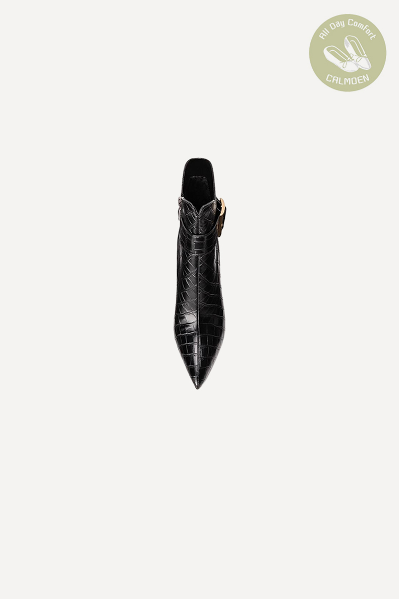 The perfect ankle height—neither overshadowing nor overbearing—narrows the ankle. Combined with a classic pointed toe, they visually slim the foot, elongating the ankle and creating a relaxed, effortless look.